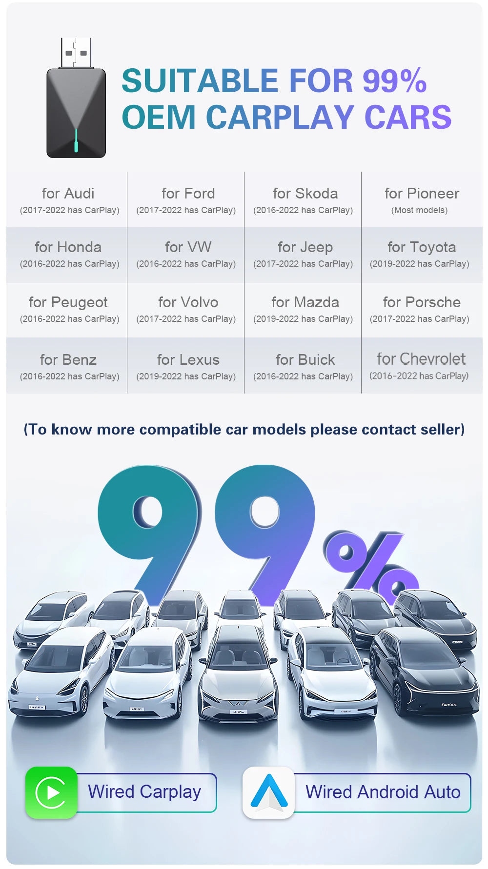 Convierte tu auto en un vehículo inteligente en segundos. Conecta tu iPhone o Android y disfruta de CarPlay y Android Auto sin cables: música, GPS, llamadas y apps favoritas de manera rápida, estable y segura.